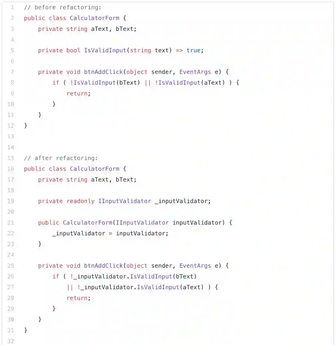 重构是开发人员日常工作的重要组成部分。颇具讽刺意味的是,OOP代码很难重构。重构本应使代码更简单、更易于维护。恰恰相反,经过重构的OOP代码变得异常复杂——为了使代码可测试,我们必须使用依赖项注入,并为重构的类创建一个接口。即便如此,若没有像Resharper这样的专用工具,重构OOP代码其实很难。