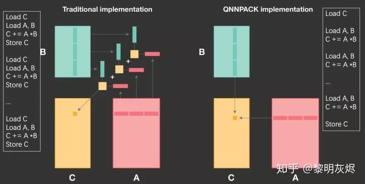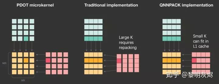 图三:QNNPACK 和传统矩阵乘对局部计算的处理