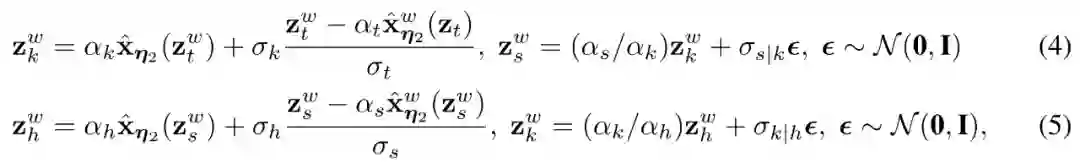 N 步可确定性和随机采样:一旦模型训练完成,给定一个指定的 w ∈ [w_min, w_max],然后使用 DDIM 更新规则执行采样。