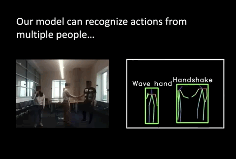 它还提出了一种新颖的多提案模块,该模块扩展了基于骨架的动作识别,以检测多人同时进行的动作和互动。