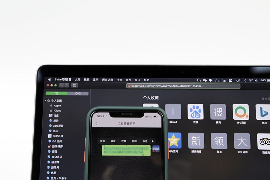 又或者别人在微信给你发了一个链接,你想在电脑上打开,也同样可以复制这个链接,选中 Mac 浏览器的地址栏按下「command」+「V」,就能把链接给复制过来,非常方便。