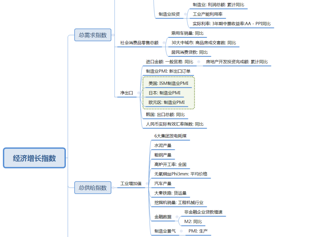 以经济增长指数为例,萝卜投资经济增长系统化框架(局部)如图5所示: