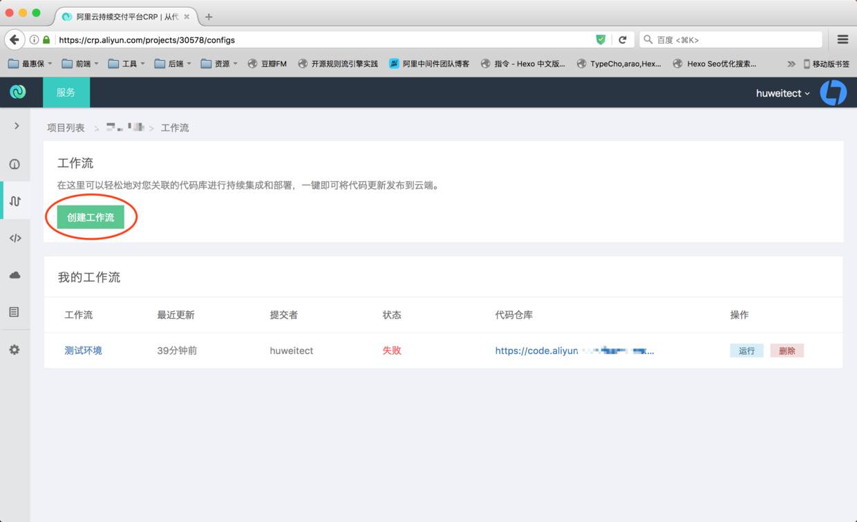 笔者这里使用的是OSCGit托管代码的,但是CRP只能从阿里code中拉取代码,所以难题就是怎么打通阿里code和OSCGit,让提交到OSCGit的代码怎么同步到阿里code,自建Git服务器可以使用GitHooks,但是OSCGit,以及GitHub只提供了Webhooks,后面我们在来说怎么使用WebHook同步代码。