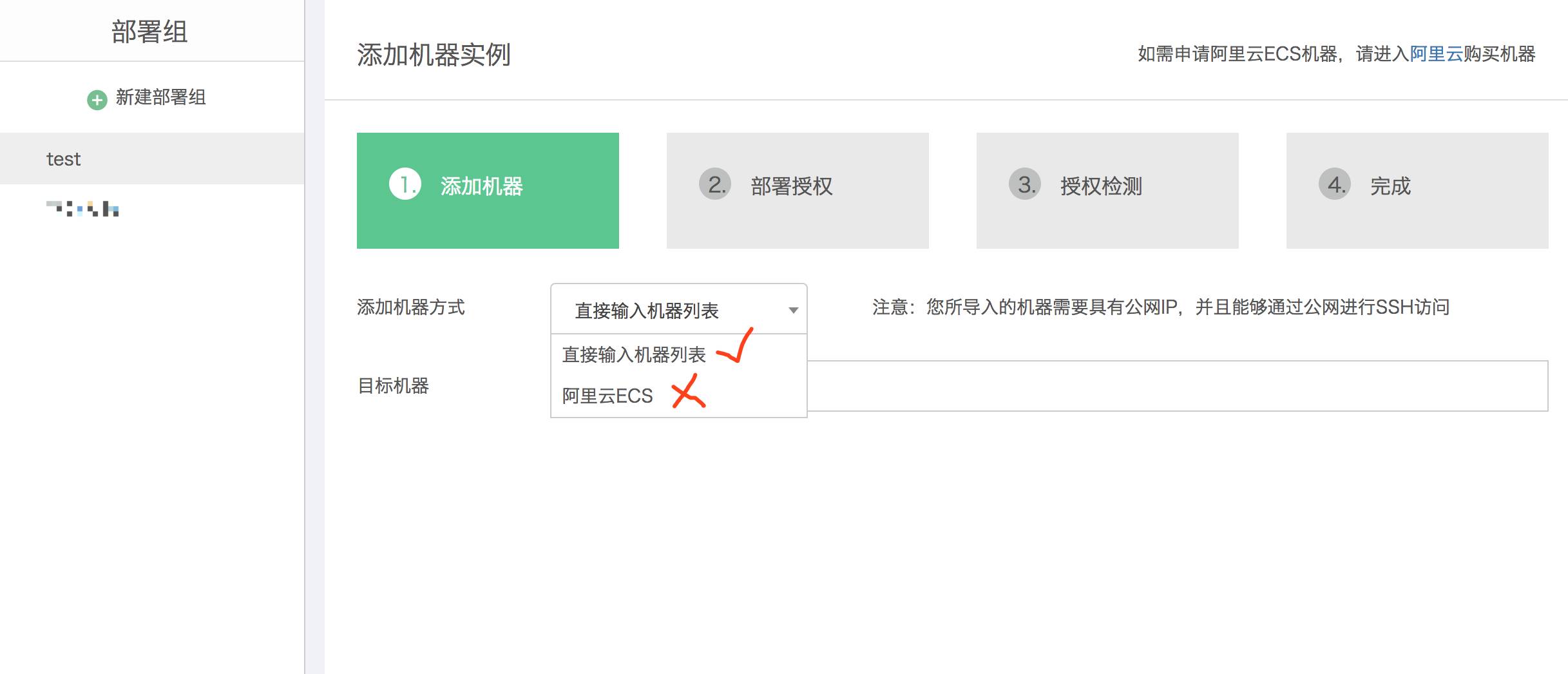 添加机器,请选择直接输入机器列表,这样方便点,注意需要支持公网SSH。