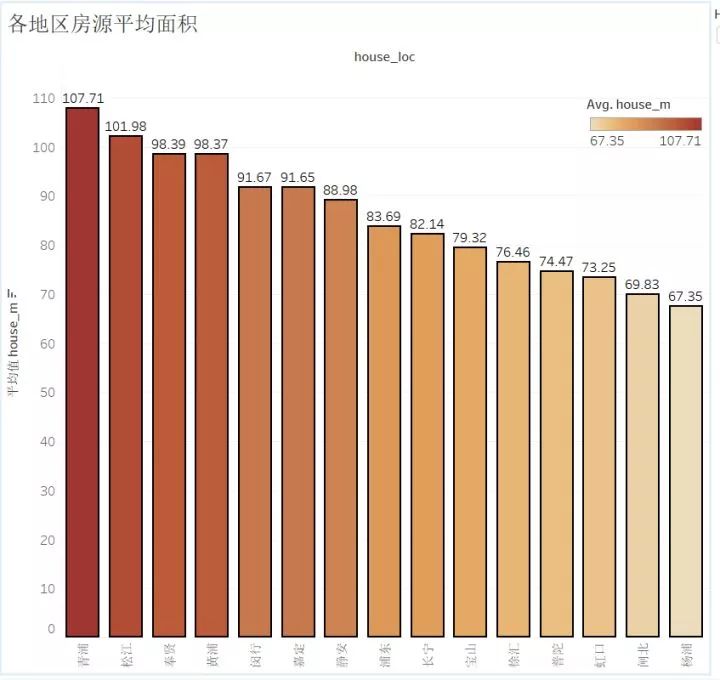 平均面积:青浦/松江/奉贤等地区,二手房源的面积都是比较大的,杨浦/闸北/虹口的房屋面积会比较小一些,静安/黄浦区的房源面积没有想象中的小,黄浦区的房源平均面积甚至排到了第四(可能是给有钱人住的23333)