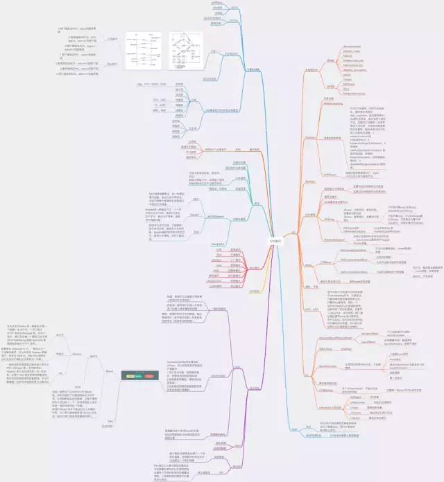 知识总结我是通过MindNode处理的,有些详细,有些仅仅一提,但是都能从看到的知识点展开回答。每次看一遍内心就复述一遍,基本都背下来了。当然这只是部分知识,还有很多没有总结,以后我也会继续为它添砖加瓦的。如果有朋友想要加入的话我非常欢迎,大家也可以自己下载自行添加知识点。或者自己创建都行,我只是感觉以这种方式完善知识体系很不错。当然这里不能做详细展开,所以最好也有适合自己的笔记总结。例如:我使用印象笔记收藏相关模块的高质量文章作为相关知识点的扩展。