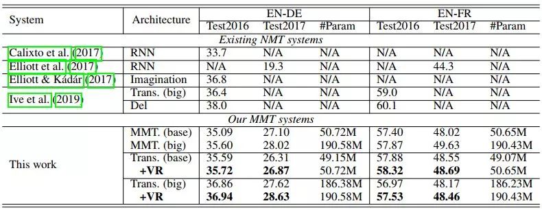 使用这种方法,可以避免对大规模双语-图片数据的依赖。实验结果也表明,这种方法可以一致地提高翻译效果。