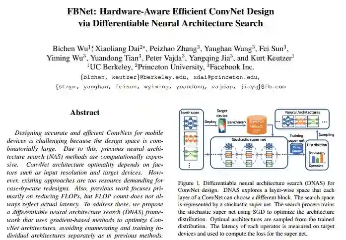 论文下载地址:https://research.fb.com/wp-content/uploads/2019/05/FBNet-Hardware-Aware-Efficient-ConvNet-Design-via-Differentiable-Neural-Architecture-Search.pdf?