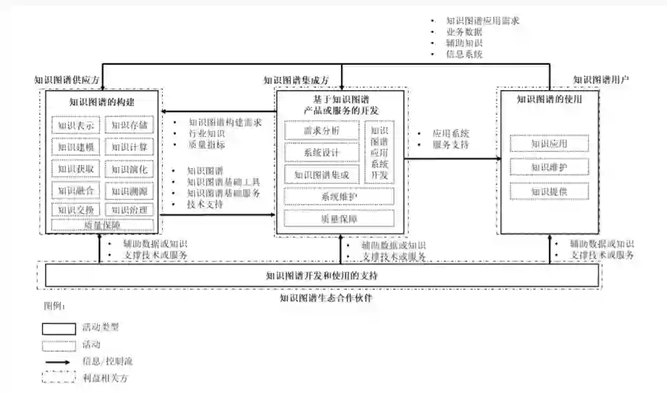 1) 知识图谱供应方:主要执行知识图谱的构建和提供活动;