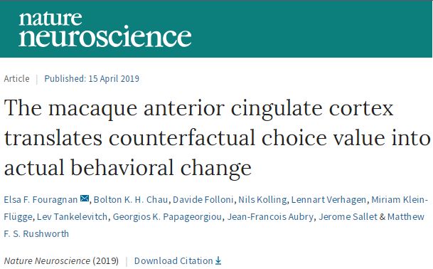 [2] Themacaque anterior cingulate cortex translates counterfactual choice value intoactual behavioral change