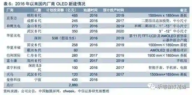 国内厂商方面,京东方、深天马、华星、和辉光电、信利等在内的大陆厂商投资计划总计已达2,880亿元;国外厂商则由三星、LGD主导,2016年以来计划投资额已经达到3,189亿元。