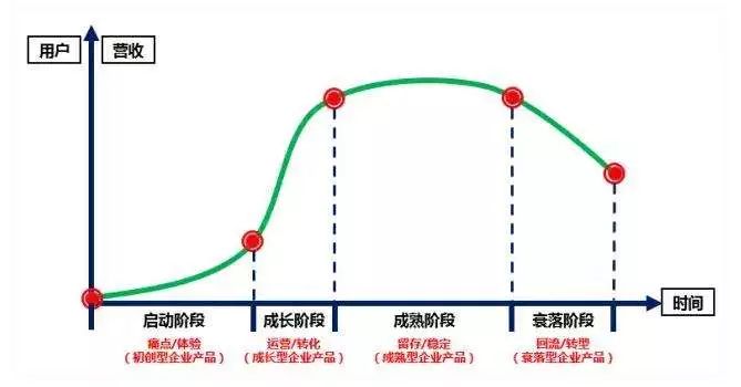 这是典型的生命周期四个阶段,同样也有很典型的”过程性“。每个过程的用户、产品都有不同的特点,我们可以做针对性的策略运营。