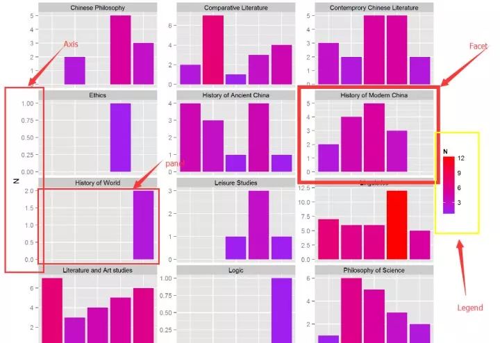 在调整主题这方面,值得褒奖的是,theme函数其实最妙的地方是将对于数据相关的美学调整和与数据无关的美学调整分离了。譬如说,我们要改变x轴的颜色,或者panel的底色,这个其实与数据处理无关,这种分离就会使得我们可以如此流程化地操作作图,而不需要在考虑数据的时候还要关注到与数据无关的美学参数。有人有时候会觉得ggplot2很奇怪的地方就是为什么调整legend的时候,有时要用scale_,有时又要用theme,其实这都是对于ggplot2这个设计理念的不理解,作者的设计思路是要将数据处理与数据美学分开,数据美学与数据无关的调整分开。