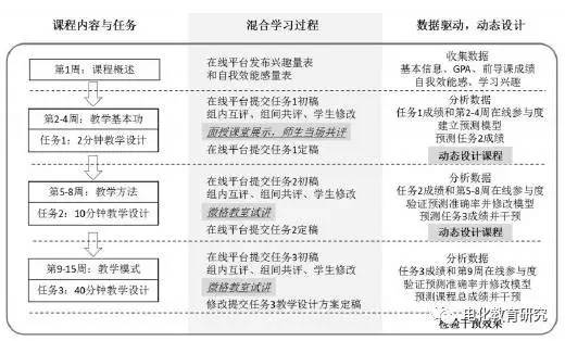 为了系统地说明混合课程动态设计的过程,本研究连续两年开设了面向大学生的校园混合课程,在此过程中收集和分析多来源的学习者数据,建立学习预测模型,发现预测因素,提出动态设计策略,并采取教学干预措施。本研究意在通过实证研究,探索混合课程动态设计方法,并初步检验设计结果,以实现提高混合学习质量的目的。