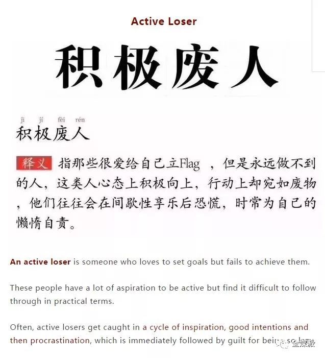 “积极废人”中英结合版