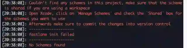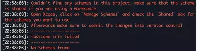 如果你的工程是用cocoapods的那么可能会提示让你勾选工程的Scheme,步骤就是打开你的xcode,点击Manage Schemes,在一堆三方库中找到你的项目Scheme,在后面的多选框中进行勾选,然后rm -rf fastlane文件夹,重新fastlane init一下就不会报错了。