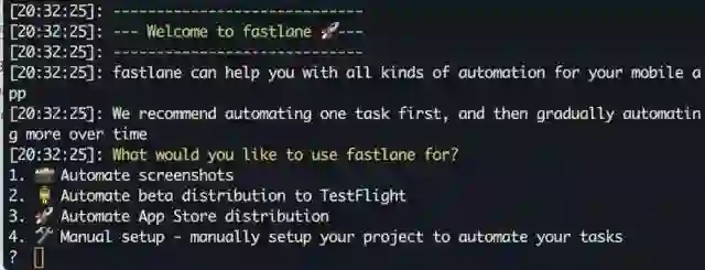 这里会弹出四个选项,问你想要用Fastlane做什么? 之前的老版本是不用选择的。选几都行,后续我们自行根据需求完善就可以,这里我选的是3。