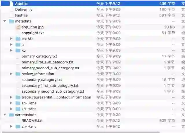 初始化成功后会在当前工程目录生成一个fastlane文件夹,文件目录为下。