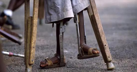 尼日利亚罹患脊髓灰质炎的儿童。图片来源:纪录片《走进比尔:解码比尔·盖茨》