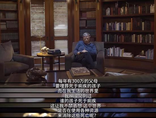 比尔和梅琳达·盖茨基金会的会议上,PPT清晰呈现了过去几年基金会在消除脊髓灰质炎上的成绩:持续投入上百亿美元后,新增病例却变多了。镜头一转,破晓前空无一人的办公室,电脑屏幕把64岁比尔·盖茨的脸照得半明半暗,这个曾连续13年称霸《福布斯》全球富翁榜的企业家,仍保留着过去的习惯,他一边咬着镜脚,一边蹙眉思考。