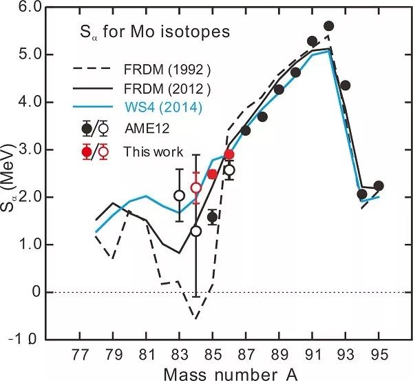 图1 基于本工作得到的丰质子区Mo同位素α分离能。