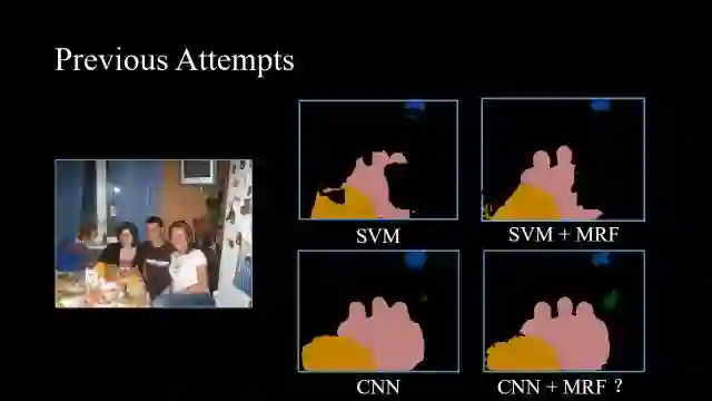 这也是所谓的语义分割,这方面已有很多工作,比如SVM或者SVM和MRF(Markov Random Field)概率图模型的结合,以及当前流行的CNN,2015年我们提出了一个问题:如何把CNN和MRF结合起来?