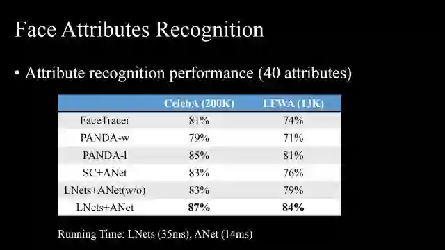我们的属性分类在CelebA 和 LFWA上都取得了比较好的结果,而且其运行速度也是比较快的。