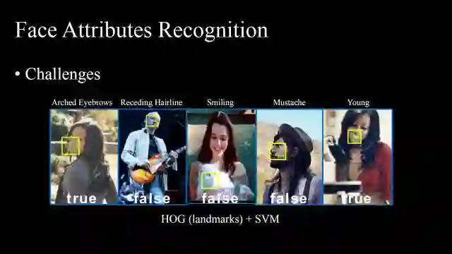 传统方法常采用HOG在人脸关键点处提取信息,然后训练一个SVM分类器来得到最终结果。它会有很多错误结果,分析其中原因:第一,真实条件下的人脸存在较大的姿态及尺度变化,因此基于关键点的方法不一定奏效;第二,属性空间是非常大的,线性分类器SVM不足以解决这个问题。