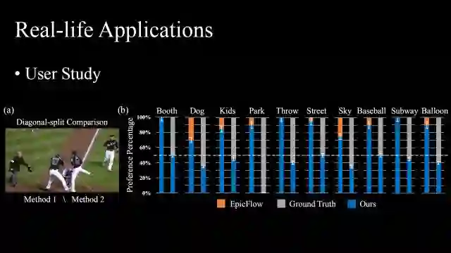 最后我们做了一些真实视频上的测试,一些没有计算机视觉背景的人观察我们的方法和其他方法的效果,投票表明我们的方法明显效果更好。而且,如果使用更高清的数据来训练,最终效果会更好。
