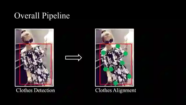 但是我们依然遵循计算机视觉社区二十多年的经验,来进行视觉上的服饰理解。首先,可以利用faster-RCNN或者SSD等算法,训练一个服装检测器,然后我们提出服装对齐的方法,服装确实具备一些关键点,可以从关键点处提取其局部本征信息。
