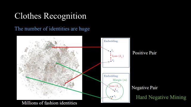 对齐完成后,可以进行我们真正感兴趣的地方——服饰识别。这个问题有很大的商业价值,但是在学术上还没有清晰的定义,其识别目的究竟是同一款式的还是同一风格的服饰,所以我们需要去平衡这两点。