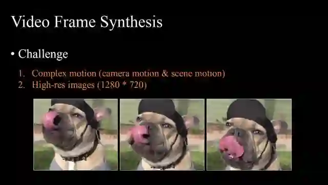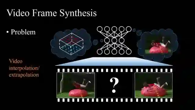 这里我们比较感兴趣的是如何生成视频帧,它有两个实际的应用,第一个是预测,第二个是插值,比如,如图第一帧和第三帧已知,我们要求第二帧。或者将低帧率的视频变成高帧率的,以及做视频压缩。这个问题是非常基础且有意义的,但也是非常困难的。