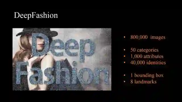 为了研究这个问题,我们依然收集了一个大规模的数据库Deep Fashion,它包含4万套不同款式衣服的80万张图片,涵盖50个种类,1000个属性,并有bounding box以及八个关键点的标注信息。