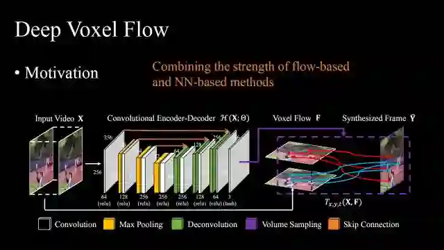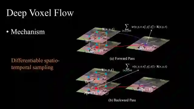 这里最核心的一个模块就是deep voxel flow(深度体素流),它是一个可微的时空采样,它可以前向或反向传导,并能够从间隔帧中学习。
