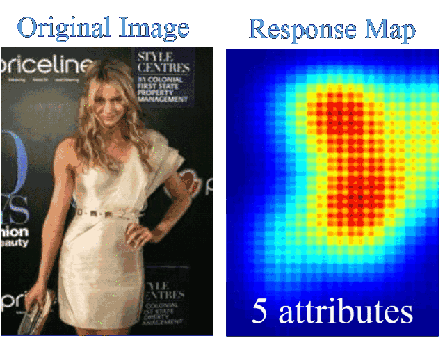 以上是我们的pipeline,整个网络分为两个部分,第一部分做定位,第二部分做属性预测,都只用了image-level的属性标注信息。首先通过Face Localization Nets定位图片中的人脸,利用人脸属性训练深度神经网络,其卷积层的响应信息其实是可以表示出人脸位置的,结果还是出人意料的精确。之后再通过训练一个Attribute Prediction Net来得到细粒属性。