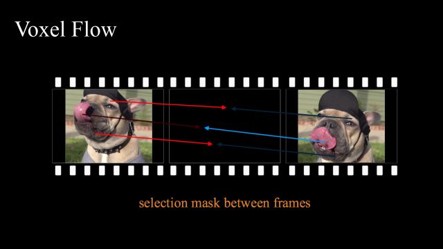 这里我们提出了基于体素流(是一个双向流)的方法,与其生成中间所求这一帧每个像素的值,不如学习可以从哪里复制过来这个值。