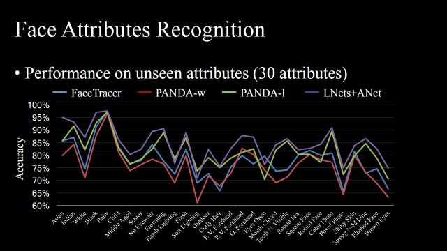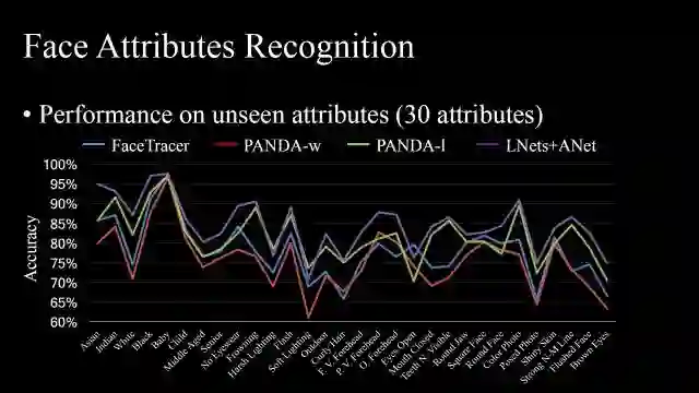 通过观察网络在未知的30个人脸上的属性预测表现,测试了属性预测的泛化能力,可以看到相对于其他方法有一定优势。
