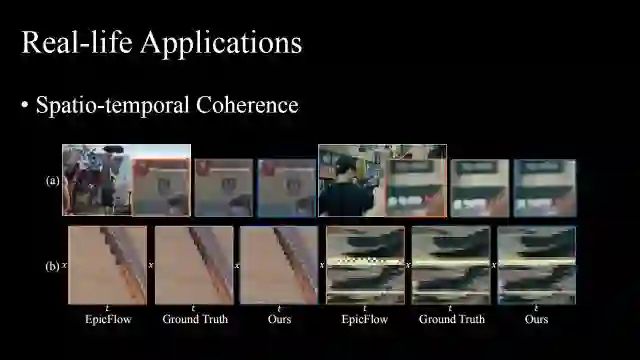 除了在空间上一致之外,它还在时间空间上也是比较连续的,(b)图是沿着视频的时间轴和x轴进行的切片,可以看出我们的方法比Epic方法要平稳一些。
