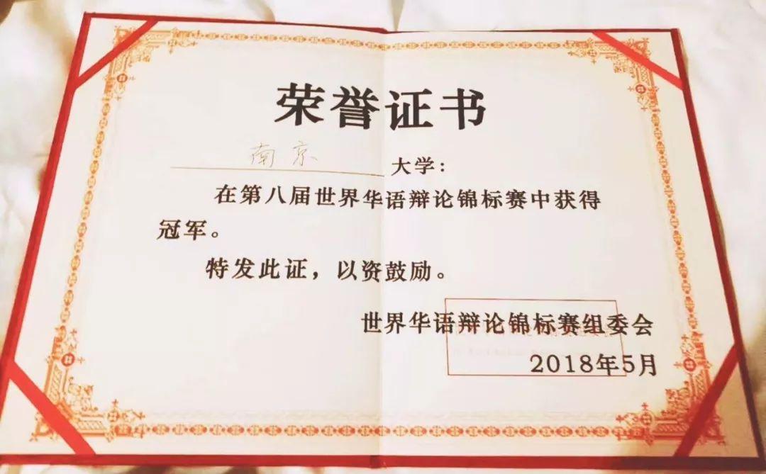 非常有幸能够以如此高龄加入校队,也很庆幸在毕业前能有一趟辩手们都梦寐以求的世锦赛之旅。感谢修哥与校队的诸位,备赛过程中从大家身上学到了许多。南大辩论队距离上一个世界冠军已经23年了,幸不辱命。