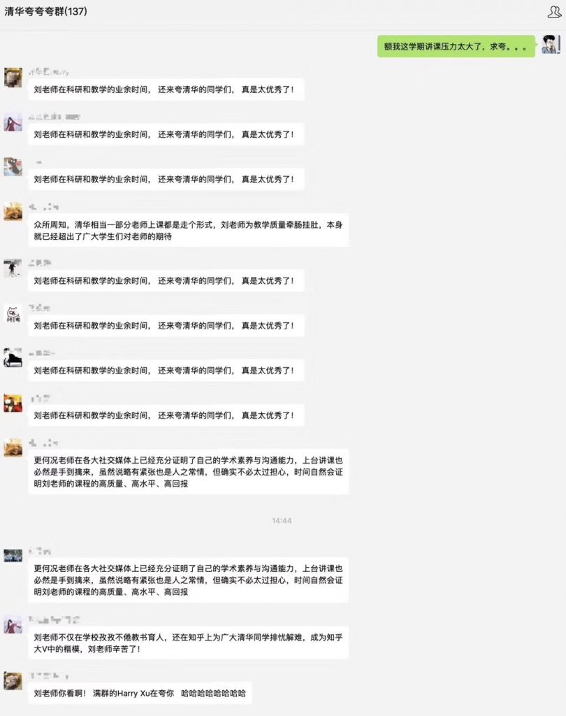 前两天通过国内NLP才俊清华刘知远老师的朋友圈了解到有个清华夸夸群: