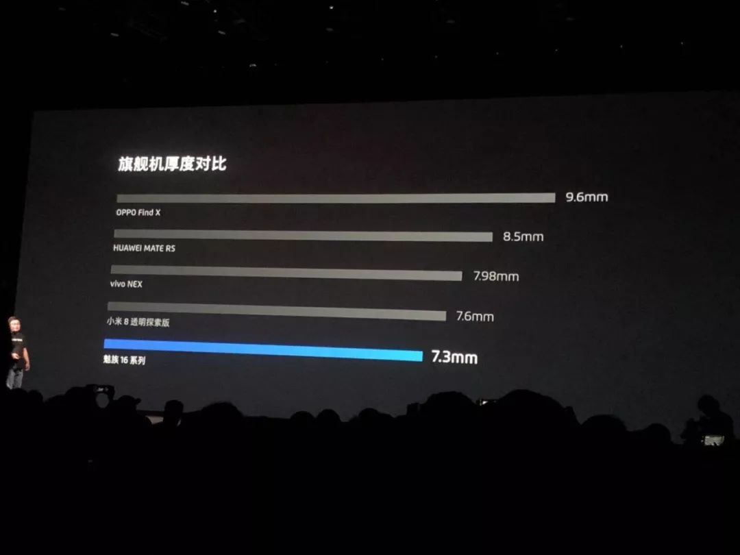 尺寸和重量方面,魅族 16 厚 7.3mm,重 152g(魅族 16 Plus 厚 7.3mm,重量则为 182g),号称 2018 年最轻、最薄的旗舰机。