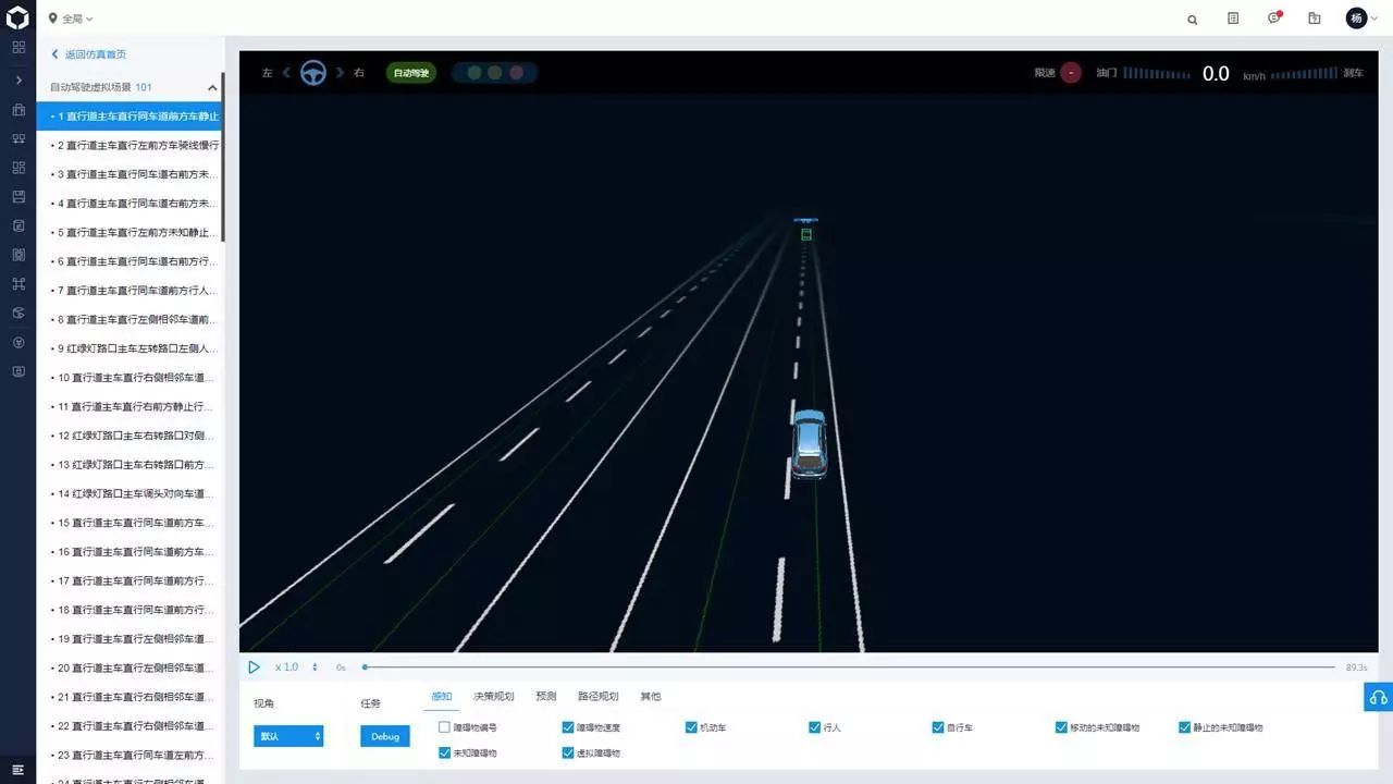 仿真场景数据的详情页中,可以进一步通过条件筛选,查看场景的细节。点击右上角的仿真平台按钮,可以进入仿真平台。