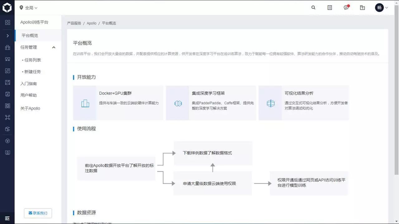 我们还通过 Apollo 训练平台为每一个数据集提供类配套的计算能力。