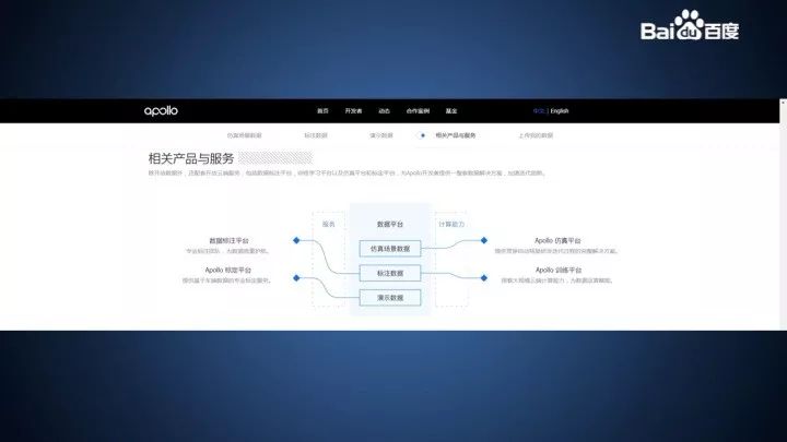 除开放数据外,还配套开放云端服务,包括数据标注平台,训练学习平台以及仿真平台和标定平台,为 Apollo 开发者提供一整套数据计算能力的解决方案,加速迭代创新。