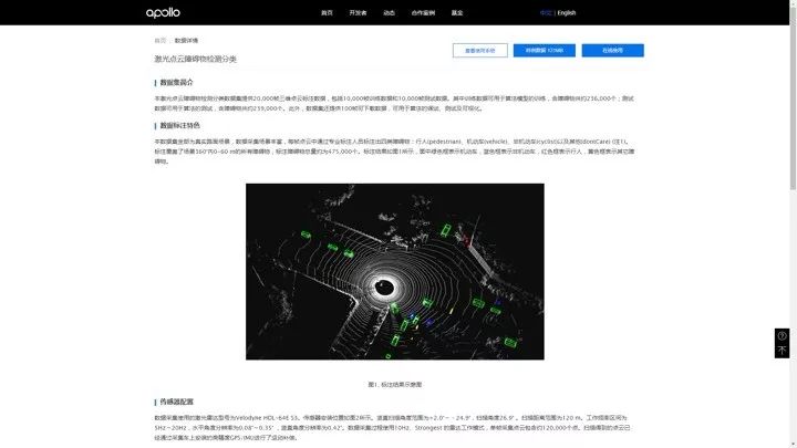 Apollo 开放了 6 个标注数据集和社区中比较流行的算法,以便开发者调试云端环境: