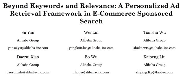 近年来,越来越多的个性化信息被引入电商搜索广告系统,如用户在平台上的浏览、点击、交易等行为。一方面,这些个性化信息能够帮助广告检索模型更好地理解用户的搜索意图。但另一方面,个性化信息也给广告检索带了新的挑战:面对从各种复杂丰富的个性化信号通道检索回的广告,检索模型需要能够高效、准确地对其按照统一标准快速排序。这个问题,在目前已知的工作中,均没有得到有效地解决。
