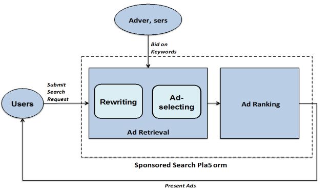 图2:搜索广告系统由三方参与:广告商、用户和系统平台