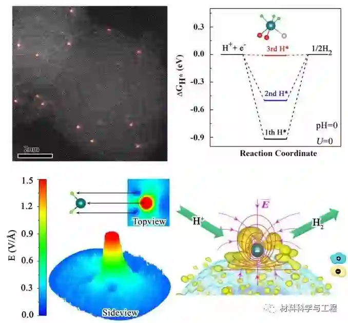 单原子催化剂金属活性位点通常会均匀地分布在负载载体上。在活性位点结构均一的条件下,从化学反应碰撞理论的角度出发进一步提升催化剂性能的策略有:(1)制备高密度的单原子催化剂(但需要增加金属的用量);(2)提高反应物在催化剂活性位点的局部浓度。特别地,催化剂的尖端结构可以具备局域电场,其作用于化学反应,反应底物在催化剂的尖端结构周围会出现局域高浓度分布,从而有望加速化学反应的动力学过程,最终获得更优的催化性能。