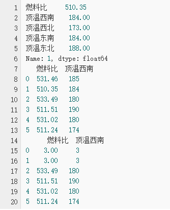 data_5row_2col=data.ix[0:5,[u'燃料比',u'顶温西南']
