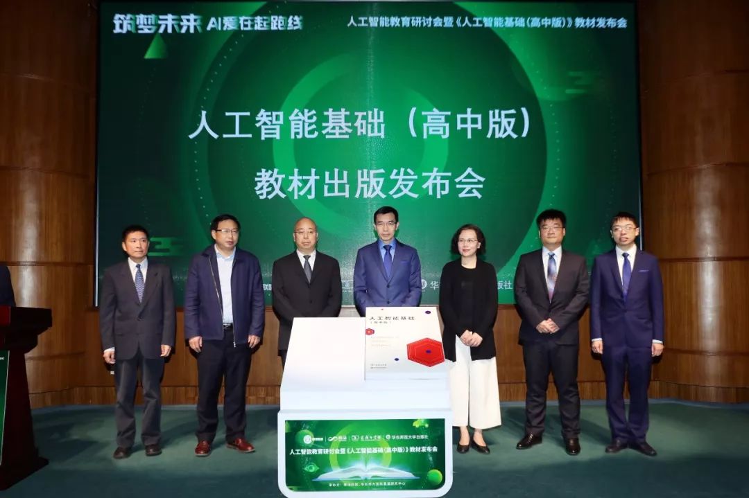 现场,由华东师范大学慕课中心、商汤科技、上海知名高中优秀教师共同编著的全球第一本人工智能教材“《人工智能基础(高中版)》”正式发布,华东师范大学第二附属中学、上海交通大学附中、清华大学附属中学、上海市市西中学等40所全国学校成为首批“人工智能教育实验基地学校”。作为教材编委成员,汤晓鸥教授还亲自为大家上了第一堂AI课。